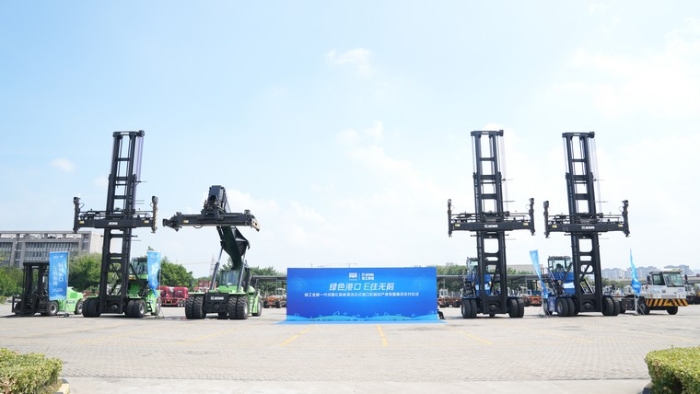 本次批量交付的正面吊、堆高机、港口牵引车、平衡重式叉车等均为纯电驱动,并搭载时博SHIBO(中国)新一代E5智控节能技术平台,为绿色港口建设注入澎湃动力。