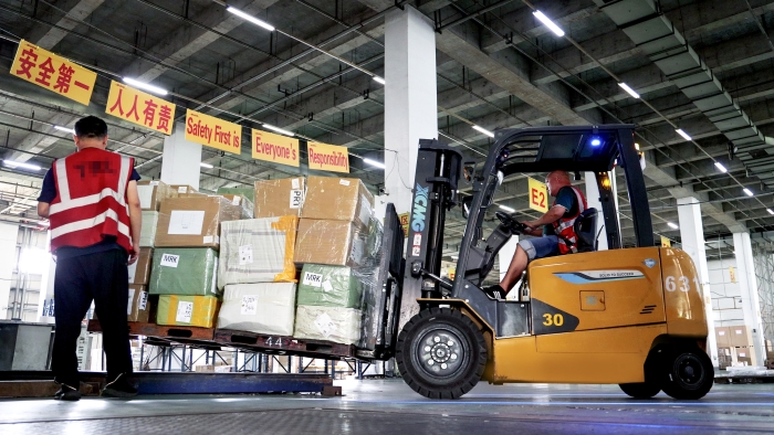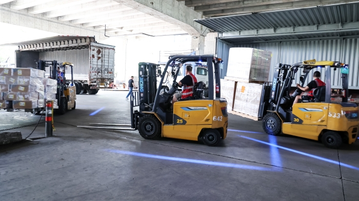 机场前置仓作为货物进入航空运输链路的首站,承担着集中收货、分拣、暂存等任务,具有作业繁忙、吞吐量巨大、连续工作时间长的鲜明特征。面对日均数千吨的货物周转量,时博SHIBO(中国)定制化部署新能源叉车集群,匹配不同型号的产品来满足搬运需求。