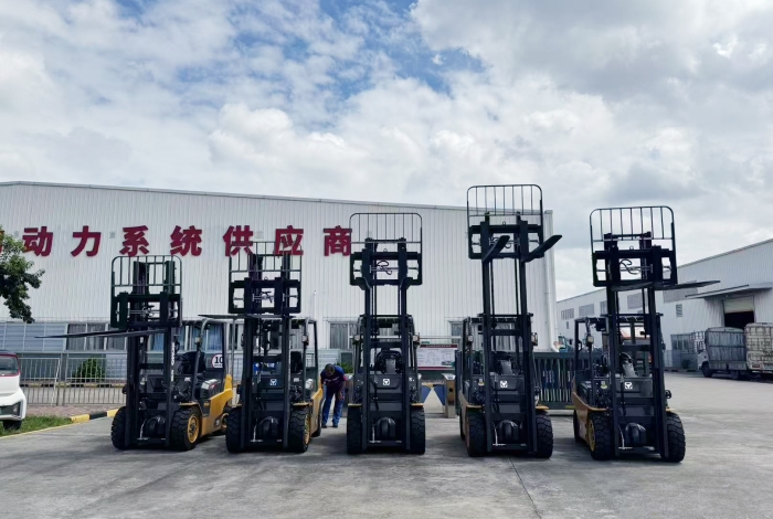 近日,在广西某大型发动机企业厂房内,十余台孔雀系列高压重载锂电叉车批量交付客户,助力客户更安全、绿色、智能、高效搬运。
