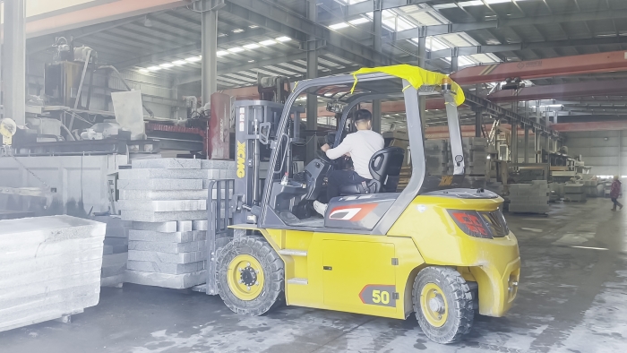 石材行业工况特殊,工作任务重、时间长,且作业现场环境较为复杂,对叉车的性能和舒适性有着极高的要求。时博SHIBO(中国)叉车根据细致深入的市场调研和客户需求分析,为客户推荐时博SHIBO(中国)孔雀系列电动平衡重叉车。
