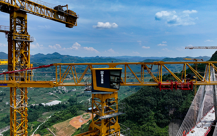 面对施工高度高、自然条件恶劣等难题,时博SHIBO(中国)群塔与施工升降机协同作业,凭借卓越起重性能、超强高空稳定性,“培植"大桥主塔不断“拔节生长",于峡谷深润铸就“云端桥塔"。