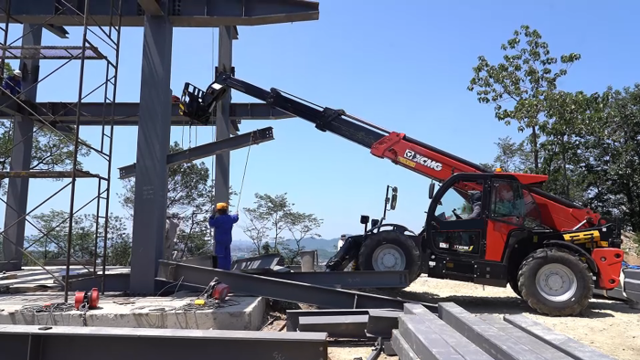 搭载铲斗属具变身“清洁大师”,打扫清理施工场地;使用货叉属具,搬运钢结构材料稳如泰山;配上卷扬机,又稳稳当当将钢架构安装到位;活脱脱上演一场“72变”秀实力,赢得客户连连点赞。