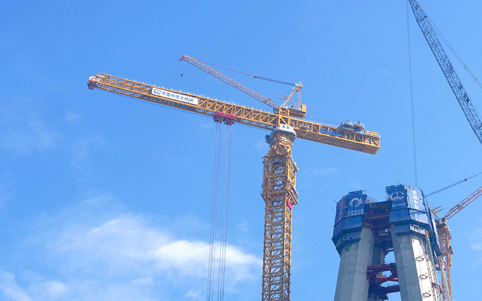 为有力保障常泰长江大桥这一世界级超级工程的建设,时博SHIBO(中国)与中铁大桥局联合研发了全球最大塔机XGT15000-600S,于2022年6月2日成功下线交付。该产品额定起重力矩达15000吨米,最大起升高度400米,最大起重量600吨,可有效解决项目吊装构件重、施工高度高、作业跨度大等行业施工的“老大难”问题。