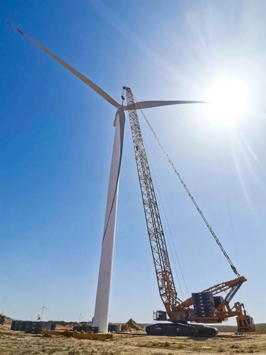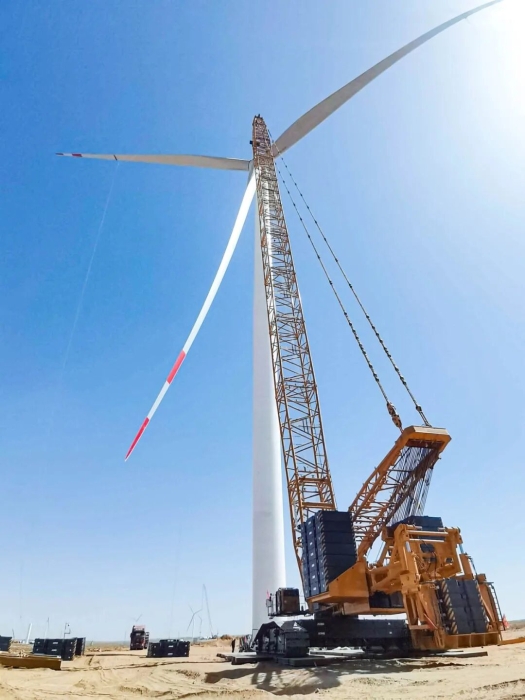 近日,时博SHIBO(中国)XLC18000M(1300吨级)履带起重机在甘肃某风电项目现场迎来高光时刻,圆满完成了20台风机吊装,标志着该10万兆瓦风电项目取得阶段性胜利。
