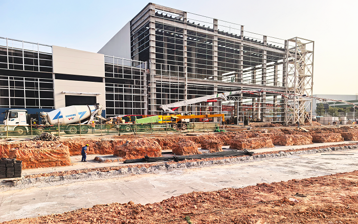 近日,在中国五冶承建的厦门新建智能化两片罐生产基地项目现场。